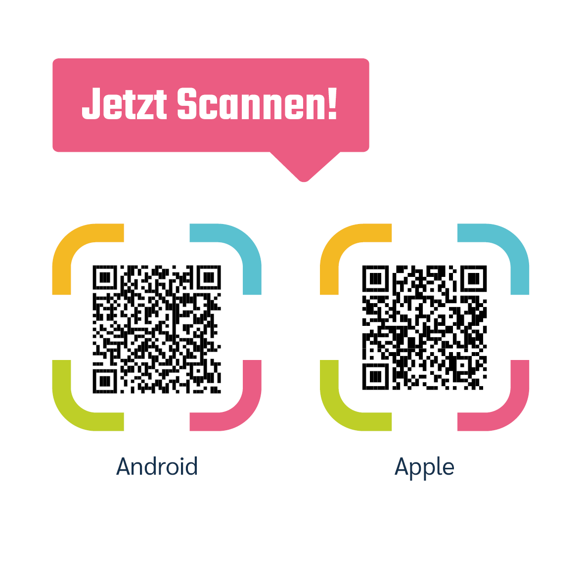 Alternativ gelangst du mit einem dieser beiden QR-Codes direkt zu dem jeweiligen Store.